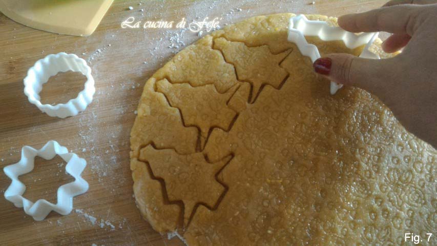 Corte seus biscoitos com os cortadores até terminar a massa (fig. 7).