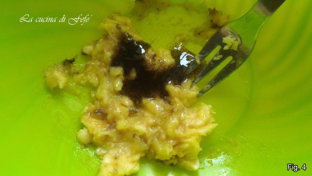 • Em uma bacia grande, amasse a meia banana madura com os dentes de um garfo (fig. 3).