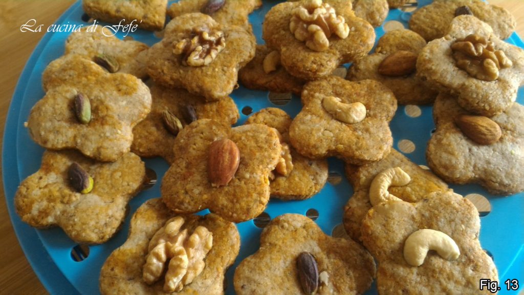 Há várias semanas o clima na Sicília mudou completamente, tornando-se estranhamente sombrio, úmido e às vezes quase tropical! Claro, você pode dizer, já é outono, mas para nós a equação dificilmente vale! Infelizmente, temo que possa depender de uma mudança bem mais profunda e radical! Mas não quero obviamente me aprofundar em tudo que poderíamos fazer para interromper esse processo, mas focar mais no aspecto meramente fútil, como assar biscoitos quando chove lá fora! Aliás, levante a mão quem não se deixa inspirar por um dia tempestuoso e nublado para criar alguns biscoitinhos novos! Eu acho realmente terapêutico, me relaxa bastante! E foi assim que criei esses biscoitos super rápidos, deliciosos e saudáveis! Eles são, de fato, um concentrado de boas gorduras, devido à mistura de frutas secas de que são ricos, mas se você está de dieta, coma-os com moderação porque, por outro lado, também são bastante calóricos! Não tinha ovos em casa, coloquei o que tinha na despensa e, sem querer, surgiu uma receita muito genuína. Substituí os ovos por meia banana madura, o açúcar por mel, a manteiga, em parte, por óleo e o restante por frutas oleaginosas e, finalmente, o fermento por bicarbonato. Uma grande vantagem para nossa saúde, não acha? Também porque nozes, avelãs, pistaches, amêndoas e castanhas de caju presentes nessa mistura contêm os famosos Omega 6, ácidos graxos indispensáveis para a prevenção de doenças coronarianas, hipertensão e distúrbios do sistema imunológico. Seu poder antioxidante também combate a ação dos radicais livres, impedindo o envelhecimento celular! Além disso, são deliciosos, te convenci? Vamos, vamos fazê-los juntos!