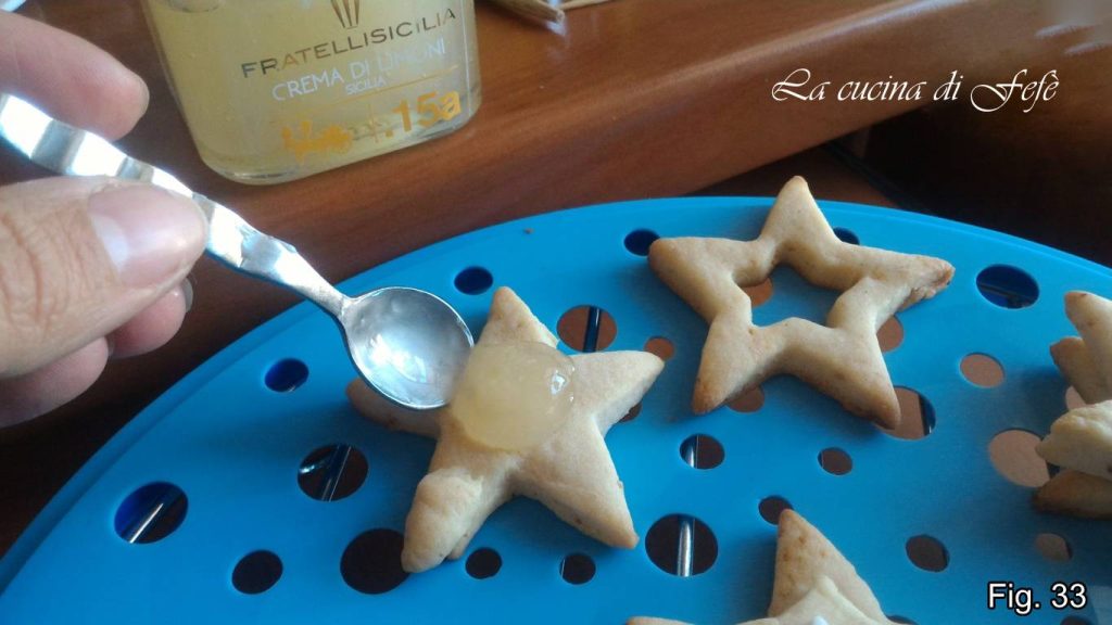 Recheie as bases das estrelas de limão com geleia ou creme de limão e una-as com as furadas (fig. 33).