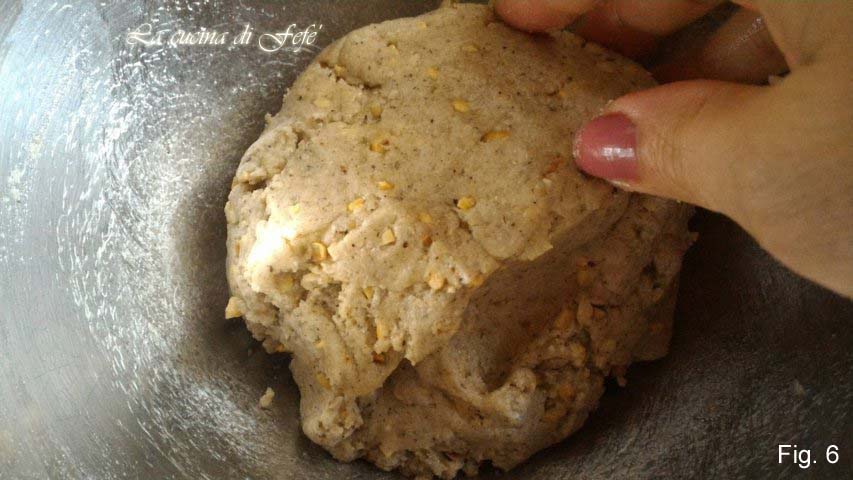 Amasse até que as avelãs estejam absorvidas e obtenha uma massa granulada e compacta (fig. 6).