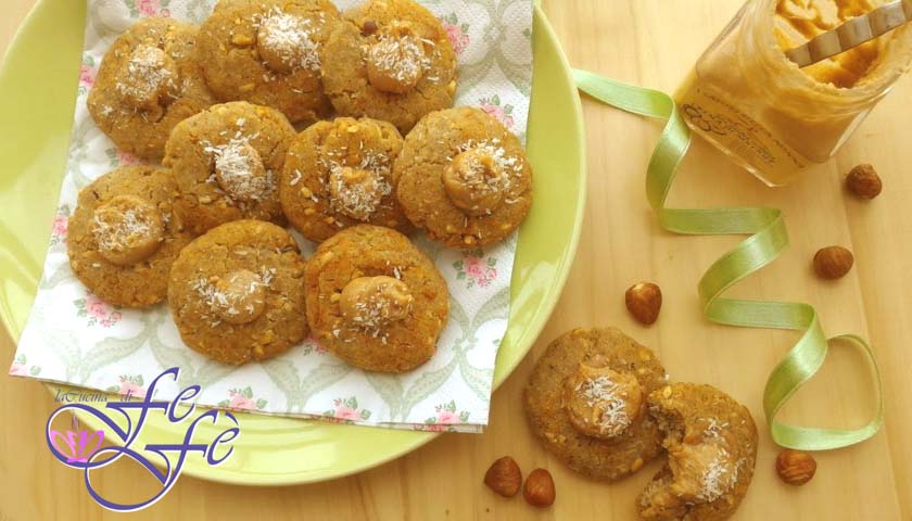 Quando vou fazer compras, exceto em casos de extrema necessidade, decido conscientemente fazê-lo quase sempre sozinho, porque meu marido geralmente se entedia e sua participação na escolha dos produtos para colocar no carrinho geralmente é zero. Além disso, não sofrendo pressão dele para acelerar o tempo e concluir o mais rápido possível, tenho a oportunidade de selecionar tranquilamente os produtos que quero levar à minha mesa, examinando um a um todos os ingredientes! Em particular, não sei vocês, mas sou atraída pela prateleira das farinhas, aquelas especiais, como a farinha de ervilha com a qual fiz na semana passada uns panquecas salgadas veganas e sem glúten muito boas. Hoje, no entanto, fui tentada pela farinha de trigo sarraceno, perfeita para fazer também neste caso receitas sem glúten como esses biscoitinhos rústicos com recheio de avelãs, sem açúcar, nem manteiga! Graças ao mel e ao xarope de bordo, fiz pequenos e saudáveis jóias de sabor, que compartilho com vocês para apreciar a escolha de adoçar de maneira diferente. Além disso, espero incentivá-los a usar farinhas alternativas nos seus pratos, doces e salgados, que trazem consigo a essência do bem-estar e dos bons e saudáveis hábitos. Claro, o custo em relação à farinha tradicional proporcionalmente à quantidade, não nego, é muito mais alto, mas investir na saúde acredito que seja uma escolha que vale a pena fazer! Dito isso, deixo a minha receita pessoal e, se experimentá-los, não se esqueçam de adicionar minha hashtag sob sua receita ou de me escrever aqui para me avisar!