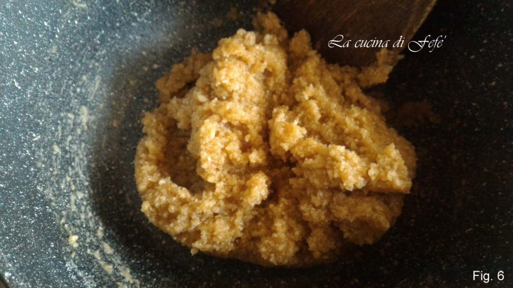 🟣** Em algumas receitas, em vez de água é previsto a adição da mesma quantidade de clara de ovo que deve ser levemente batida sem montar para ser adicionada aos pós (farinha de amêndoas e açúcar de confeiteiro) e trabalhada em batedeira equipada com pá por cerca de 15′. Depois, proceda conforme a receita.