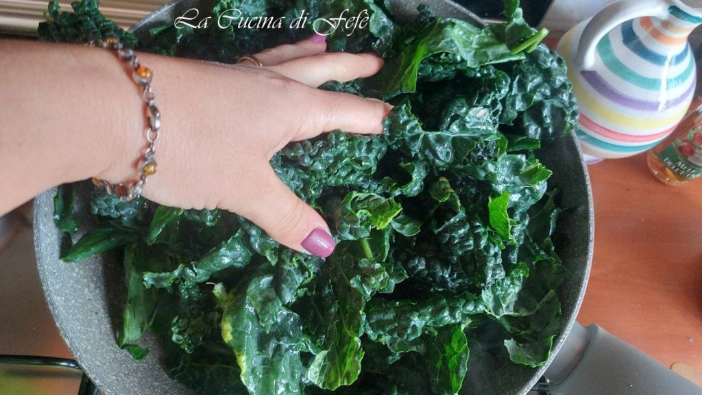 A couve negra é uma verdura típica da estação de inverno que eu amo desde que descobri sua delícia e as numerosas propriedades benéficas! Nos últimos anos, fiz várias receitas em que ela é a protagonista, mas nunca tinha pensado em prepará-la em bolinhos! Então, há algumas semanas, percebi que na minha seção de bolinhos ainda faltava essa versão e assim, com a ajuda de um volumoso maço fresco comprado no mercado de frutas e verduras, decidi prepará-los. A receita que experimentei é sem batatas na massa e devo dizer que foi uma escolha feliz, pois o sabor delicioso da couve negra pode ser totalmente apreciado e não fica comprometido pela adição de tubérculos que sabemos que podem elevar os níveis de açúcar no sangue e aumentar as calorias! Mas você pode preparar os bolinhos de couve negra e batatas, ou couve negra e ricota, ou ainda couve negra e grão-de-bico, e acredite, todas são receitas fáceis e deliciosas! Na receita, deixarei o procedimento para cozinhar os bolinhos no forno, na frigideira ou na fritadeira elétrica.