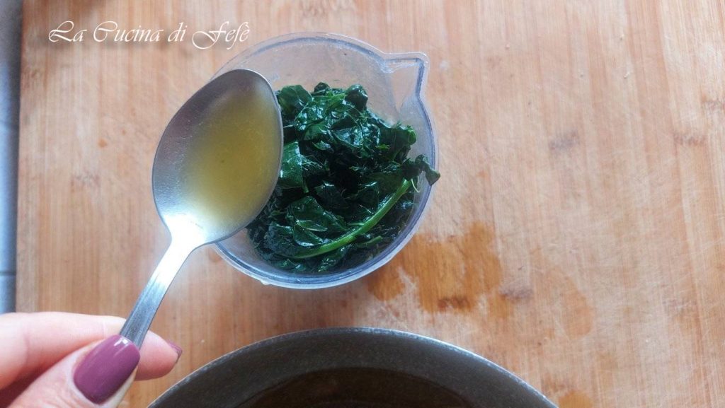 Adicione as folhas de couve com a água de vegetação, no início, como o espinafre, parecerá muito volumoso, achate-as com as mãos e cubra com uma tampa deixando cozinhar em fogo baixo por cerca de 8 minutos.
