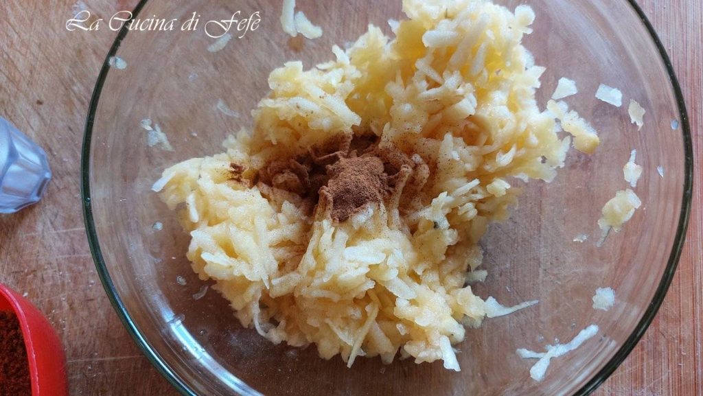 • Preparar esses bolinhos de maçã fofos é realmente fácil. Comece lavando, descascando e ralando a maçã com um ralador de furos largos.