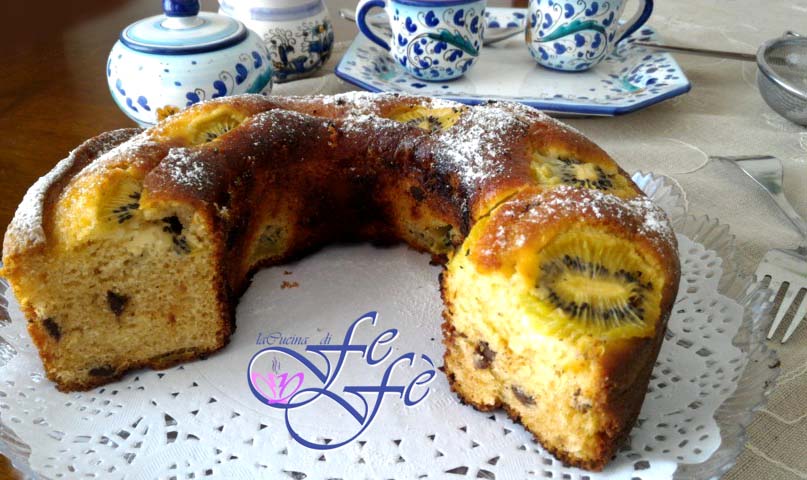 Finalmente consegui transcrever a receita do bolo de kiwi no novo blog! Ainda me lembro do dia em que o preparei! Eu tinha acabado de ceder ao fascínio do Fornetto Versilia, talvez porque, admirando as receitas de doces fantásticos e bem crescidos, li posteriormente que eles eram cozidos em uma panela nos clássicos fogões de cozinha! Cética como eu era, não achava que fosse possível! Então um dia, fui fisgada por uma foto de um bolo de kiwi feito com este forno. Nada, foi amor à primeira vista! Tinha que ser meu!!! Assim, superando os últimos bloqueios que às vezes te cegam, me lancei na compra. Não sei dizer o que aconteceu naquele momento em comparação às muitas tentativas anteriores, mas o que importa é que aconteceu! Preparei a mesma receita com apreensão e ansiedade em todos os passos onde tive dúvidas. Sim, porque obviamente é preciso pegar o jeito e esperar pelo menos até dois terços do tempo de cozimento antes de abrir e avaliar, embora o fornetto na tampa tenha orifícios para inserir um palito de madeira para ver se a massa está cozida ou não. A espera nas primeiras vezes parece infinita, e você gostaria de abrir a tampa, mas simplesmente não pode! Enfim, todos são cuidados que aos poucos se adquirem com a prática. Este bolo foi minha primeira vez, meu primeiro experimento, que não foi nada mal! Apenas um pequeno problema nos tempos de cozimento, por uma diferença de diâmetro entre meu fornetto e o da receita! Apesar disso, o bolo era de uma maciez e sabor incríveis, perfeito para o café da manhã ou como um lanche saudável! Na minha versão, parte do açúcar foi substituída por xarope de agave. Além disso, quis enriquecer o bolo com pedaços de kiwi e gotas de chocolate também dentro da massa. E aqui está o resultado! Deixe-me saber o que você acha!