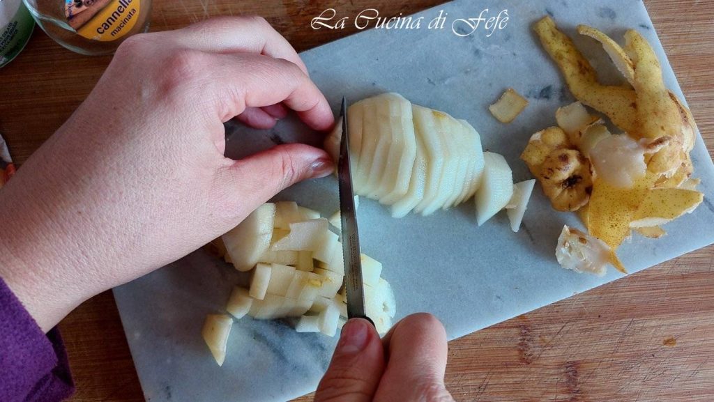 Após o tempo de descanso da aveia, adicione a pêra cortada em cubinhos junto com a canela.
