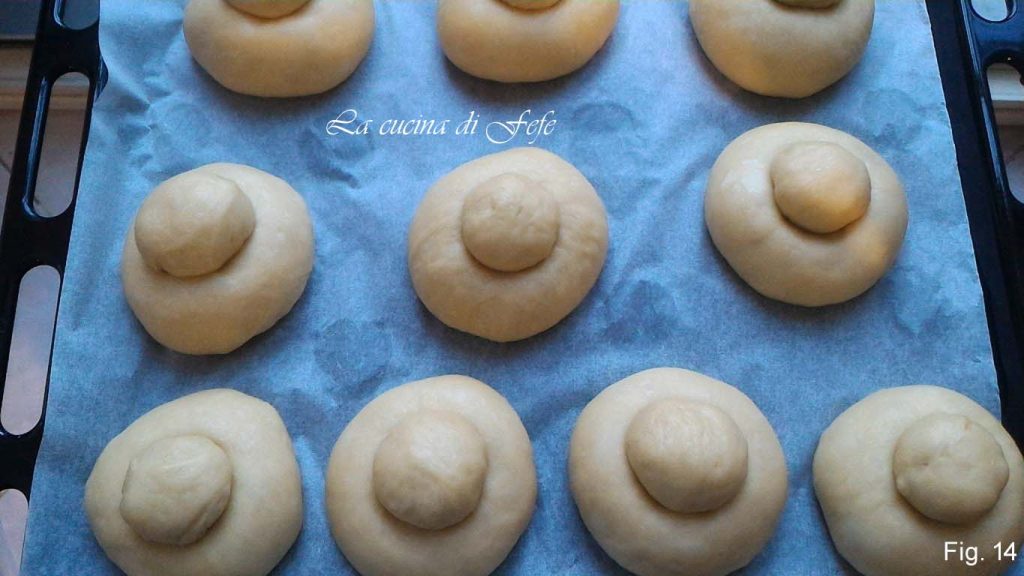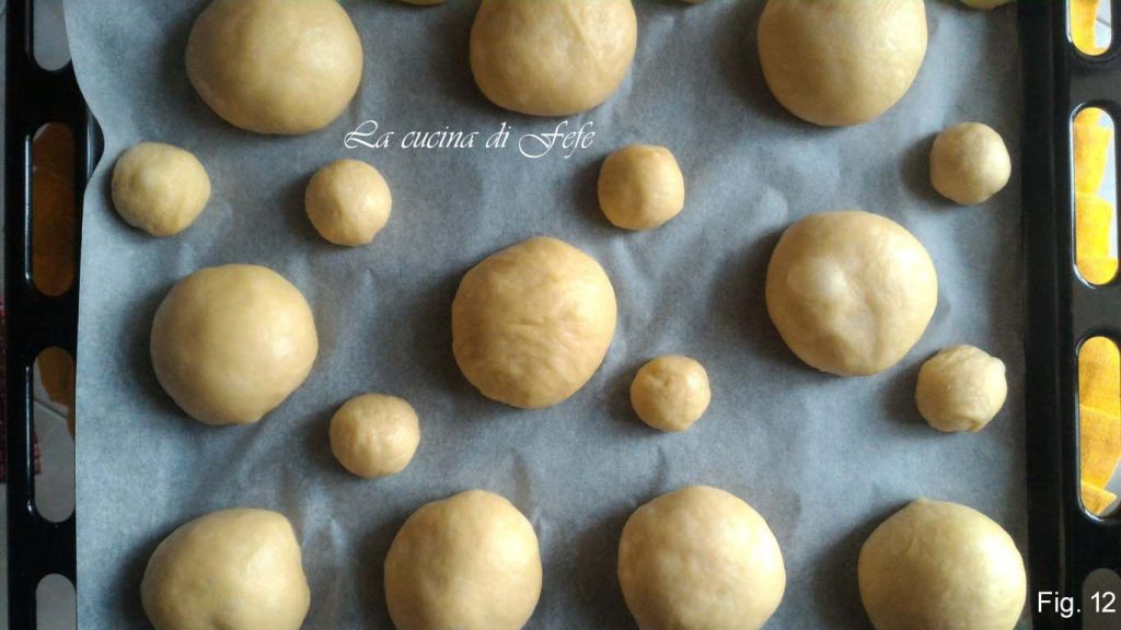• Faça bolas com as bases e os tuppos e coloque-os em uma assadeira forrada com papel manteiga bem espaçados. Deixe crescer coberto por mais 1 h.