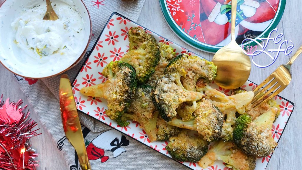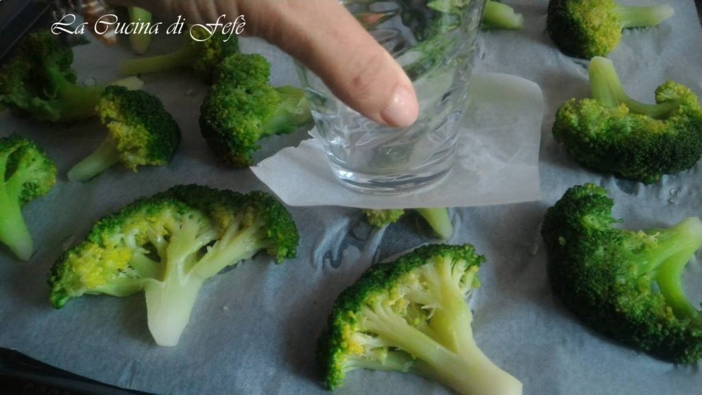 E estamos no segundo encontro após as festas com pratos mais saudáveis e leves, mas sem abrir mão do sabor! Para os amantes de receitas inovadoras, para quem procura soluções fit, vegetarianas, cetogênicas ou sem glúten, proponho este acompanhamento realmente incomum, saboroso e fácil! Além disso, é também bastante rápido, mas garanto que vocês nunca provaram brócolis assim! Como sabem, os brócolis são um verdadeiro concentrado de virtudes, possuem de fato uma riqueza incrível de substâncias nutritivas, desde fibras a vitaminas, além de propriedades anti-inflamatórias, antioxidantes e desintoxicantes! É por isso que encontrar sempre modos diferentes e combinações possíveis para consumi-los semanalmente é um bom hábito para cuidar do nosso organismo! Nesta receita, eles são levemente fervidos para depois serem amassados com a ajuda de um copo, então temperados e pincelados com um molho fácil de preparar em um pote, à base de óleo, suco de limão, sal, pimenta e poucos outros ingredientes. Finalmente, são polvilhados na superfície com parmesão ralado antes de colocá-los no forno. O sabor deles conquistará todos, grandes e pequenos! Com esta receita, vocês levarão à mesa não apenas um acompanhamento perfeito para acompanhar todos os seus pratos principais de carne e de peixe, mas também um lanche saudável e saboroso para um aperitivo informal, talvez combinado com algum molho barbecue ou iogurte como eu fiz! Uma receita peculiar mas muito simples que transforma cada florete de brócolis em uma explosão de sabores no paladar que vocês devem absolutamente experimentar!