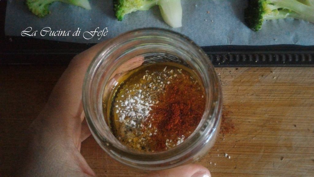 Feche o pote, agite-o até obter um composto bem misturado com o qual você vai pincelar bem todos os brócolis.