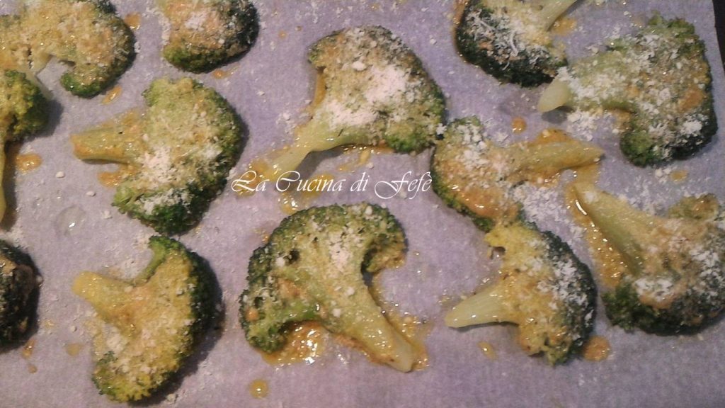 Polvilhe a superfície com bastante parmesão e coloque no forno a 200°C por 15′ ou até que as bordas dos brócolis fiquem douradas e o queijo completamente derretido.