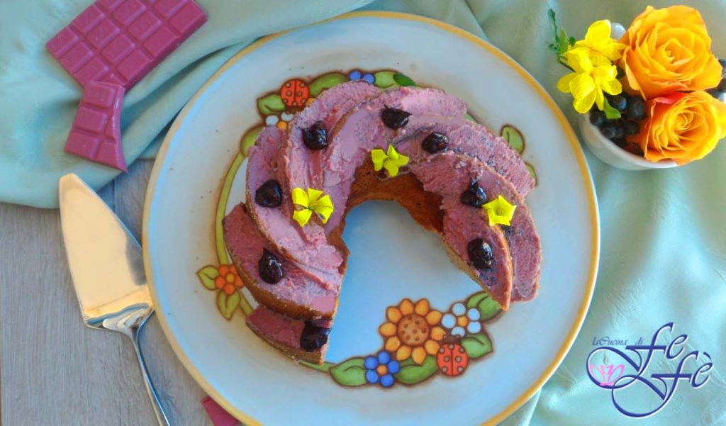 Proceda derretendo o chocolate Ruby em banho-maria, depois adicione ao queijo cremoso. Decore com colheradas a superfície do bundtcake. Eu também adicionei uma cobertura de chocolate escuro, que é totalmente opcional.