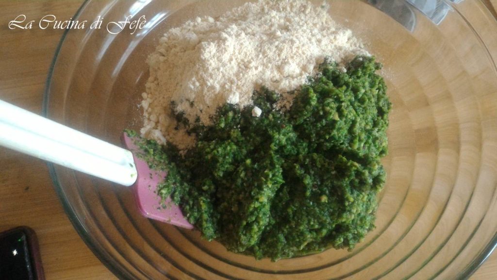 • Transfira a mistura obtida para uma tigela grande e adicione a farinha de grão-de-bico.