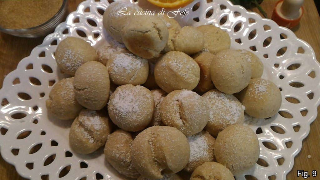 Trabalhe-os para dar uma forma esférica e disponha-os em uma assadeira com tapete de silicone como eu fiz ou forrada com papel manteiga de maneira ordenada, a alguns centímetros uma da outra, para evitar que durante o cozimento, crescendo, possam se colar umas às outras. Asse em forno pré-aquecido, modo estático a 180ºC por cerca de 10′-11′.