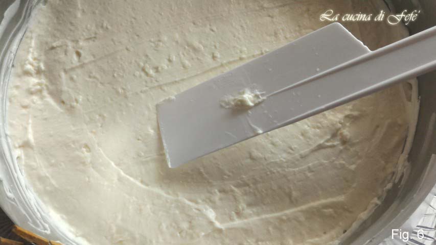 • Esprema as folhas de gelatina e derreta-as em 3 colheres de sopa de leite quente. Adicione à mistura e continue misturando. Por fim, bata o creme de leite até que fique bem firme e volumoso e adicione ao creme de queijo, usando uma espátula, com movimentos lentos de baixo para cima para não desmontar. Neste ponto, despeje o creme assim obtido sobre a sua base de biscoito.