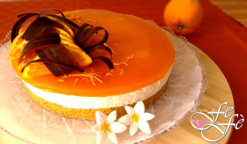 Agora a minha paixão por cheesecake ultrapassa os limites mais incríveis e nunca esperados! Adoro fazê-las diferentes e coloridas com base nas frutas da estação disponíveis, e depois me aventurar na decoração final conforme a minha imaginação me sugere! Desenvolvi uma verdadeira paixão por doces em geral e sinto muita satisfação quando alguém, ao vê-los, suspira com admiração e surpresa! Este que proponho acredito que encerra a temporada das laranjas. Aproveitei porque no mercado de frutas e verduras do meu bairro, encontrei um agricultor que vende os frutos de sua plantação sem a adição de pesticidas. Uma verdadeira bênção para mim! Na realização dessa maravilhosa sobremesa de colher, escolhi conferir um sabor fortemente cítrico das laranjas da Sicília, em contraste com a gulodice do chocolate amargo! Uma verdadeira delícia para o paladar. Aproveito para informar que abri meu novo canal YouTube onde explico como apresentar um cheesecake na mesa sem a antiestética base da forma em que geralmente é preparado (AQUI PARA ACESSAR)! Conto com vocês e espero que gostem da minha receita!