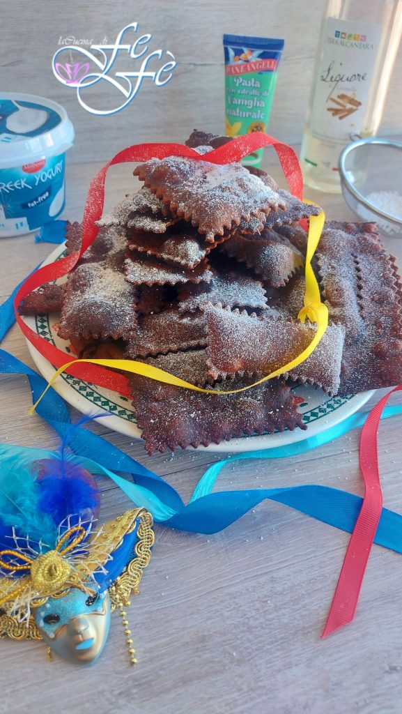 Após o sucesso das chiacchiere de mascarpone, estou experimentando para vocês uma nova versão alternativa dos docinhos símbolo do Carnaval! É uma receita ainda mais rápida e leve, mas sem abrir mão de fritar, porque é feita com poucos e saudáveis ingredientes, como a adição de iogurte grego no lugar de manteiga e ovos! Essas chiacchiere são muito mais leves em comparação com outras, e por isso eu não quis assá-las, mas saboreá-las rigorosamente fritas, mas se quiser, você também pode assá-las, elas ficarão deliciosas de qualquer maneira. Além disso, para torná-las ainda mais saborosas, adicionei uma pitada de bom cacau amargo que as torna magnificamente perfeitas para quem adora chocolate! O resultado são chiacchiere crocantes, crocantes e cheias de bolhas, como nas melhores tradições. Corra para prepará-las também, são uma verdadeira delícia tanto para adultos quanto para crianças, que adoram se sujar com açúcar de confeiteiro enquanto as comem! Bem, o que mais posso dizer? Uma leva a outra!
