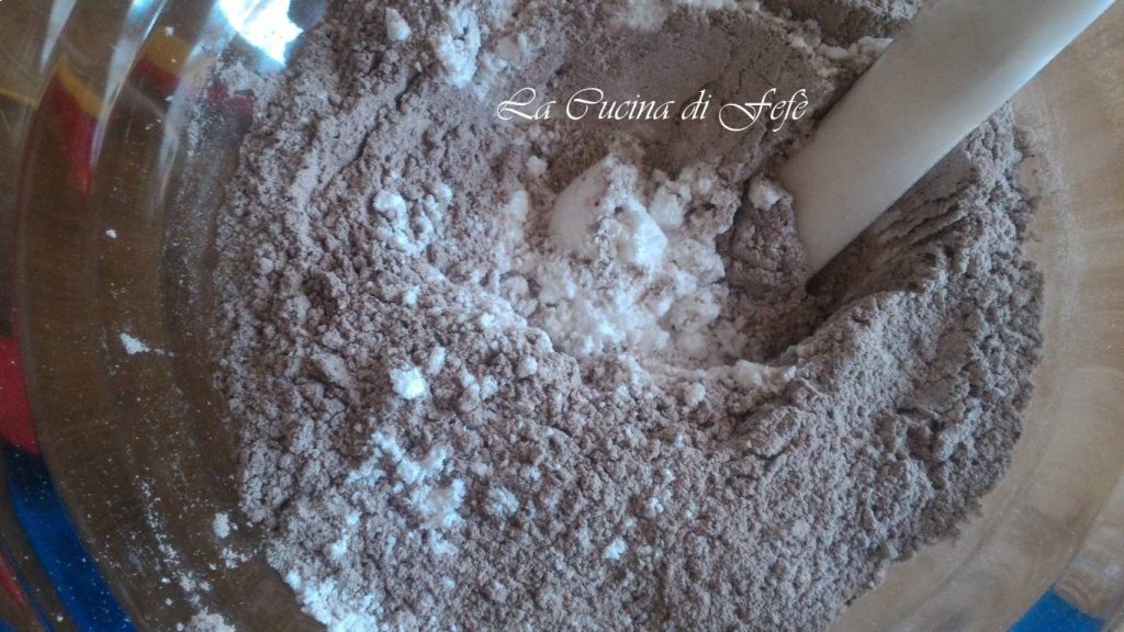 Em uma tigela grande, peneire a farinha e o cacau amargo e misture-os com a ajuda de uma espátula.