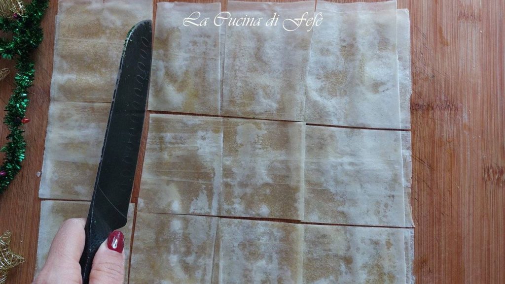 Uma vez concluída esta operação, divida as folhas em quadradinhos de cerca de 12×12 cm.
