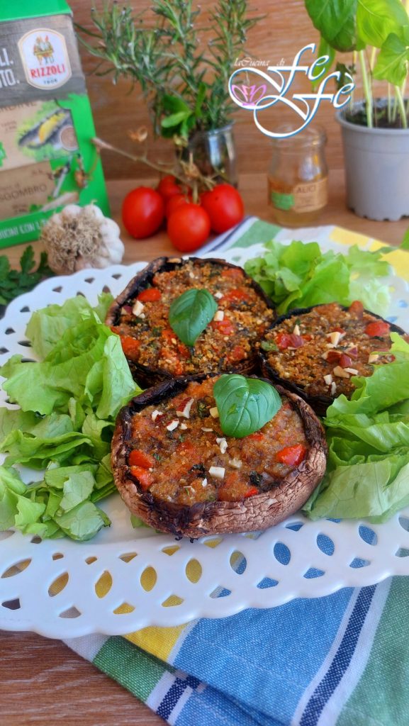 Neste período ainda encontro no mercado local perto de casa três tipos de cogumelos, os habituais Champignon, Pleurotus e os cogumelos Portobello! A minha inspiração durante a compra foram justamente estes últimos, talvez porque, mais do que todos, estão prontos para serem recheados com tudo o que a imaginação sugere! No meu caso, mais do que tudo, com o que na geladeira precisa ser consumido! Os cogumelos Portobello recheados são perfeitos para receber os recheios mais incríveis e saborosos, pois são bem grandes! Dependendo do recheio, se prestam a se tornarem um segundo prato realmente saboroso e surpreendentemente cenográfico e, se necessário, uma entrada rústica e saborosa adicionando ou substituindo alguns ingredientes. Eu escolhi uma cobertura muito rica à base de pão ralado, grana, tomatinhos, filetes de anchovas bio filetadas à mão, e finalmente, amêndoas picadas para um toque final de crocância! Preparar em poucos passos e, seguindo meus conselhos, o sucesso nas suas mesas será garantido.