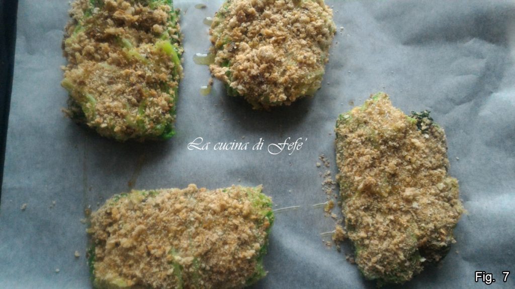 • Finalmente na farinha de rosca à qual você adicionou outra pitada de sal. Faça aderir em ambos os lados (fig. 6).