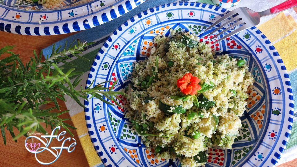 Ao longo dos anos, desde que abri meu primeiro blog até hoje, experimentei mil receitas à base de cous cous, especialmente no verão, quando o desejo por um prato fresco e leve muitas vezes prevalece! Normalmente, me deixo guiar pela criatividade ou principalmente pelo que encontro na geladeira, mas desta vez me inspirei em uma receita vegana encontrada na web, que transformei em uma versão vegetariana mais adequada para mim. A preparação básica com o cous cous é sempre a mesma, muito simples e requer poucos minutos de cozimento a vapor, então não vai tomar tempo de você no fogão! Para o tempero, respeitei a escolha de legumes e leguminosas da estação, todos rigorosamente verdes, como sugere o título imponente da receita, portanto abobrinha, ervilhas e um fantástico pesto de rúcula. Eu então enobreci o prato com um toque de sicilianidade, adicionando um punhado de pistaches de Bronte, entre meus favoritos como nozes, e que eu gostaria de destacar, também são verdes! Naturalmente, são opcionais, mesmo sem eles, ainda é um ótimo primeiro prato no estilo vegetariano para preparar até de última hora, caso apareçam convidados inesperados! Um prato completo do ponto de vista nutricional, perfeito em qualquer momento dos seus dias de verão, para levar à praia, em um piquenique, para preparar um almoço informal ao ar livre e, se desejar, como finger food em um buffet servido em copinhos apropriados! Em suma, prato totalmente aprovado e, sem dúvida, aprovado por nutricionistas!