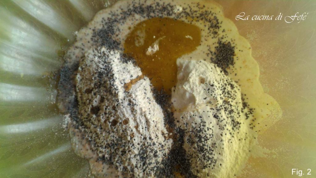 Adicione então o azeite, a água com gás e as sementes de papoula.