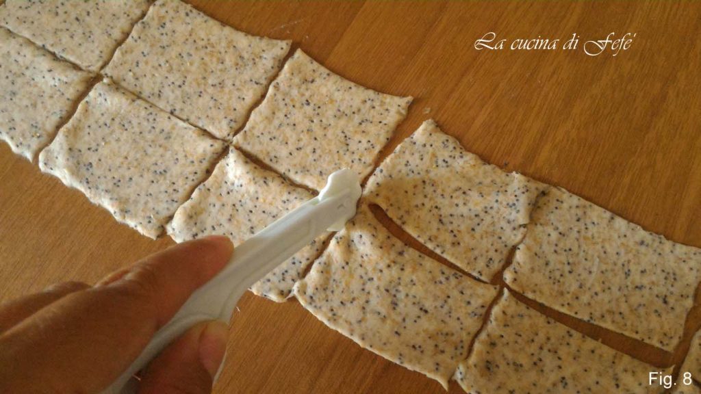 Corte em retângulos com a ajuda de um cortador de massa dentado como se fossem biscoitos crackers.