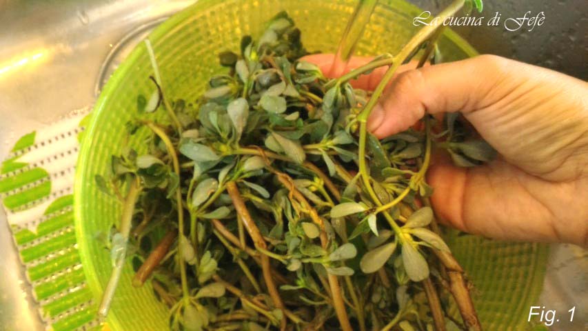 Lave bem a beldroega sob água corrente, removendo os resíduos de terra (fig. 1).