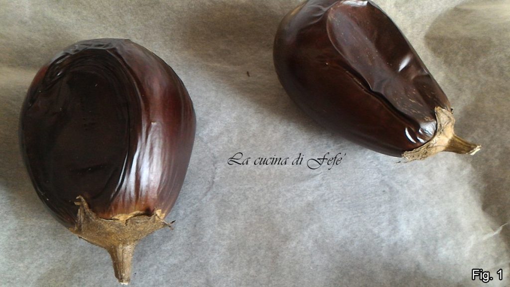 Lave e seque as berinjelas. Coloque-as em uma forma coberta com papel manteiga e asse a 200°C por 45′.