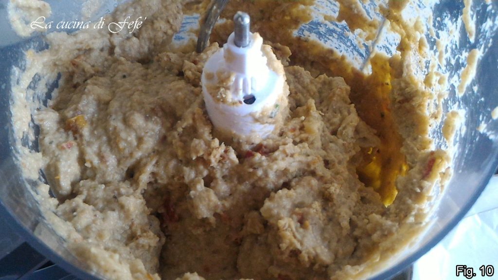Comece a bater até obter uma mistura homogênea, então adicione os tomates secos escorridos* (fig. 5).