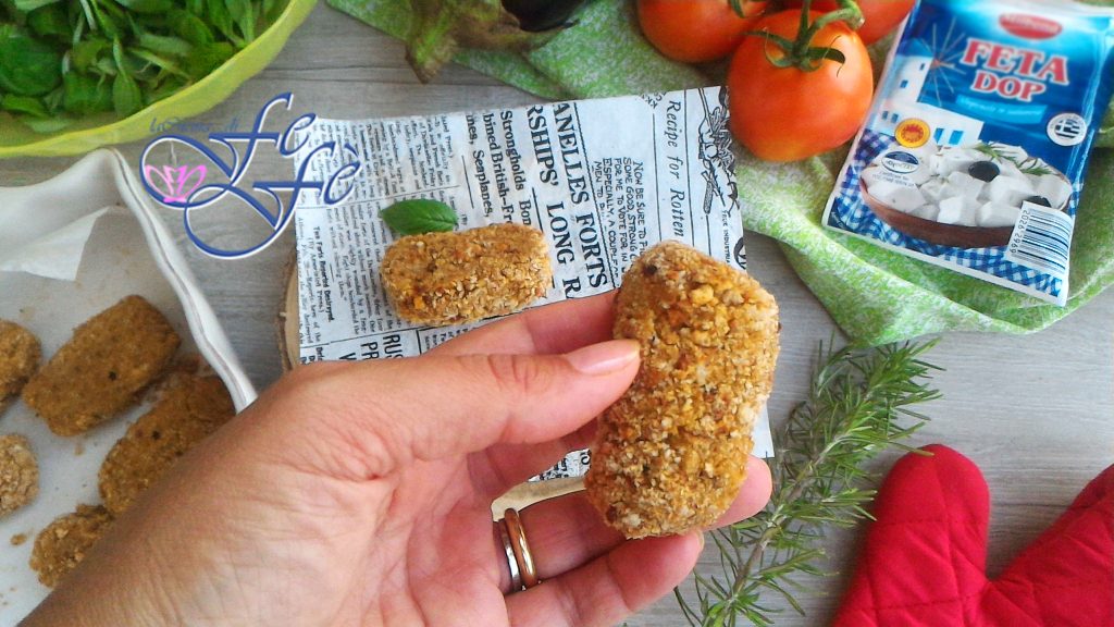 E voilà… os croquetes de berinjela, feta grega e tomates secos estão prontos para serem saboreados!