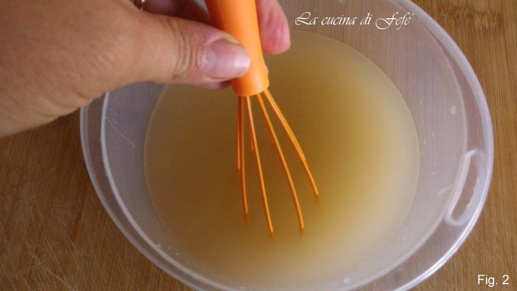 Adicione também o fermento e dissolva completamente com um batedor de mão (fig. 2).