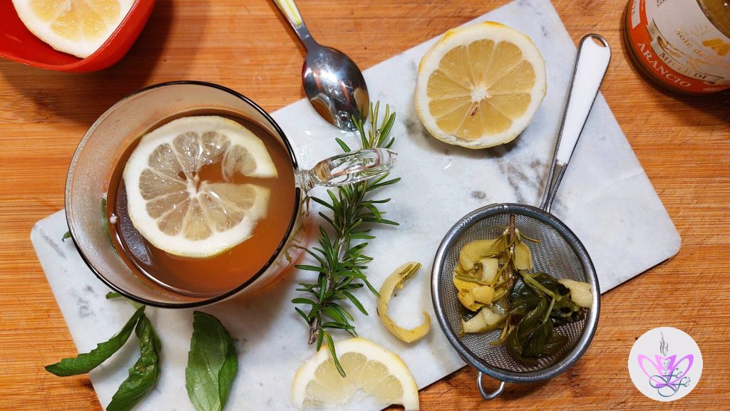 A combinação destes três ingredientes determina um efeito potencializado: a casca de Limão é antioxidante. É rica em Vitamina C e flavonoides capazes de combater os radicais livres e apoiar o sistema imunológico. Contém também pectina, preciosa para a saúde intestinal; o alecrim é protetor e possui propriedades digestivas; o manjericão é anti-inflamatório. Um dos aspectos mais interessantes desta bebida é seu duplo efeito sobre o sistema nervoso. Por um lado, o manjericão age como um calmante natural, ajudando a gerenciar o estresse e a ansiedade. Por outro lado, o alecrim oferece um impulso de energia mental, melhorando a concentração e a memória. O resultado? Um estado de serenidade e calma ao enfrentar os desafios diários com clareza e sem os efeitos colaterais de estimulantes como a cafeína. Em suma, um verdadeiro elixir a ser preparado para enriquecer sua rotina diária.