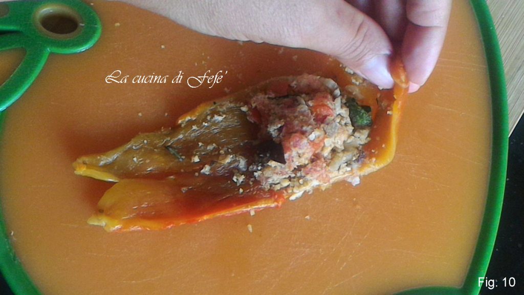 Encha cada tira de pimentão com uma colher de chá desta mistura (fig. 10).
