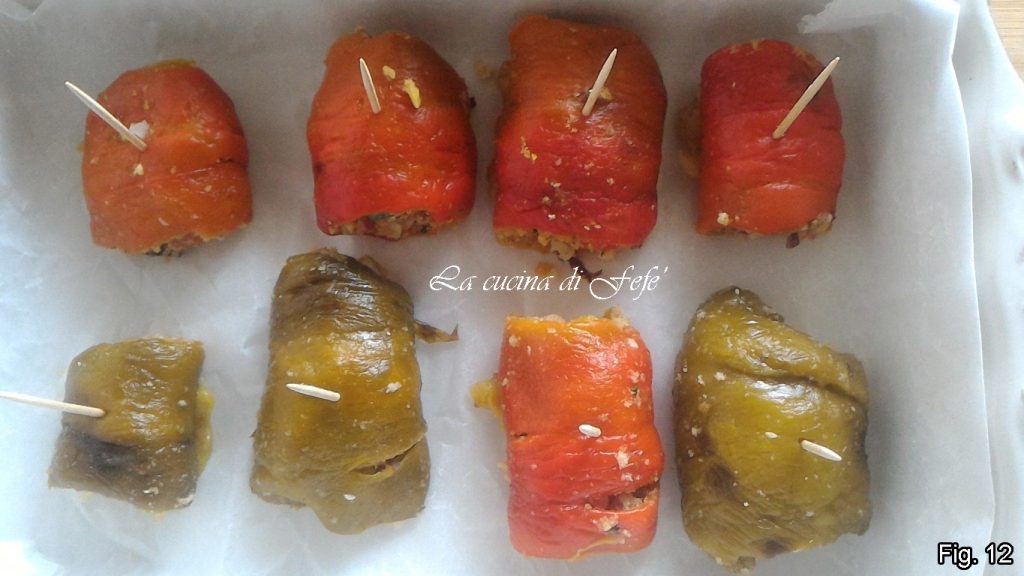 Os envelopes de pimentão, são um acompanhamento vegetariano cheio de sabores e aromas, que podem facilmente se tornar também uma deliciosa entrada finger food. Os pimentões, sem o pedúnculo, cozidos no forno e divididos em tiras, são recheados de várias formas graças à sua versatilidade. O mais comum é certamente com carne moída ou linguiça, mas também há versões com anchovas ou pão amanhecido. Enfim, há para todos os gostos! Minha versão pessoal apresenta pimentões no estilo vegetariano, muito coloridos e suculentos, à base de tomatinhos, nozes, pão ralado, alcaparras, azeitonas e muitos aromas, como alecrim, hortelã e manjericão. Aromáticos! Sempre que os preparo, descubro que nunca são suficientes! Experimentem também vocês!