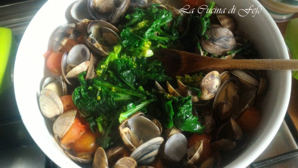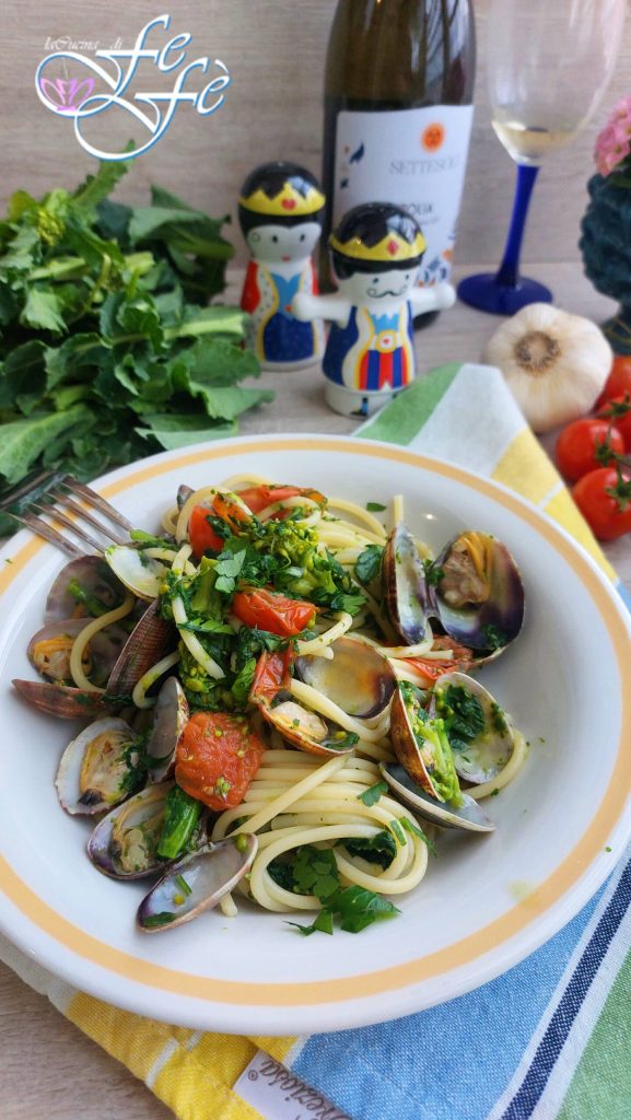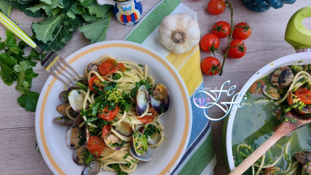 Se vocês me acompanharam nas redes sociais, saberão que há alguns dias recebi da minha vizinha de casa alguns belos maços de brócolis selvagens da sua horta! Um presente muito apreciado por mim, que estou sempre em busca da genuinidade dos produtos que compro e, se forem locais, melhor ainda! E após uma análise cuidadosa das possibilidades em que poderia usá-los e, visto que a quantidade recebida não era certamente pequena, decidi aproveitar uma parte para fazer um belo primeiro prato no estilo mar e montanha! Um prato que certamente evoca a estação do verão, mas ao mesmo tempo ainda tem uma marca invernal! O que dizer? A combinação com as amêijoas é realmente algo único, especialmente se você não for purista e, como eu, gosta de experimentar novas combinações! Sim, porque se é verdade que o espaguete com amêijoas é tradicionalmente feito em branco ou, no máximo, com a adição de alguns tomatinhos para dar um toque de cor, esta variante, no entanto, merece ser provada! O sabor forte e decidido dos brócolis de fato não sobrepõe o mais delicado das amêijoas, ao contrário, seus aromas e sabores se abraçam em uníssono criando um molho muito apetitoso e atraente, ideal para temperar espaguete ou qualquer outro tipo de massa longa que você desejar! Uma receita simples, além de muito rápida de preparar, ideal para servir em ocasiões especiais como o Natal ou durante grandes almoços de domingo em família!