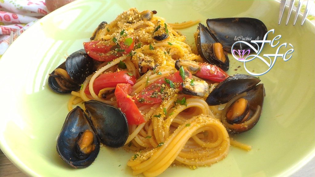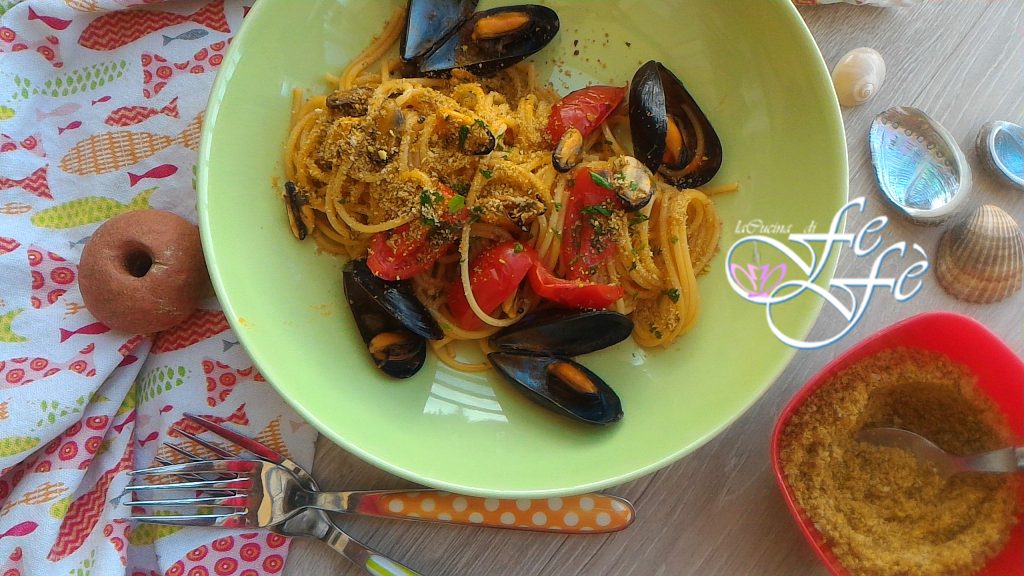 E voilá… seus espaguetes com mexilhões e farinha de rosca com pistache estão prontos para serem saboreados!