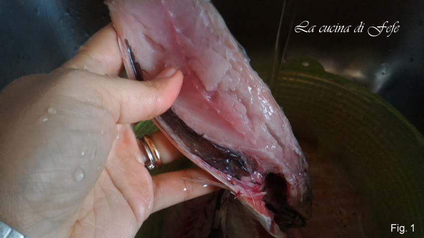 Limpe as cavalas eviscerando-as. Faça um corte nas costas da cavala e retire o primeiro filé. Vire-a e retire o segundo, removendo a espinha central. Enxágue os filés em água corrente (fig. 1).