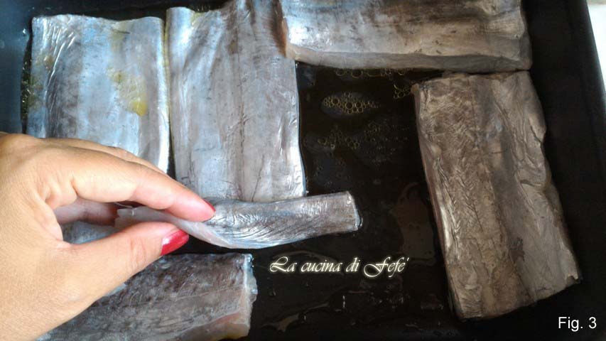 Ah quanto amo a minha bela Sicília! É uma ilha única para mim, onde o sol e o cheiro de maresia os encontramos o ano todo, elementos imprescindíveis para quem mora aqui e sem os quais não se poderia nem conceber viver! É um lugar incrivelmente rico em recursos, aqueles indubitavelmente da nossa amada terra, mas também aqueles que o mar nos oferece! Aqui, em qualquer lugar que você vá, nunca falta a oportunidade de poder saborear sempre peixe fresquíssimo a preços acessíveis, como o peixe espada, também chamado de “sabre”, pertencente àquela categoria de peixes chamados “pobres”, mas que depois nem são tanto! Na verdade, trata-se de um peixe em forma de fita com uma aparência não muito tranquilizante, mas, acredite, de grande versatilidade e enormes potencialidades. Hoje, proponho uma receita fácil, diria quase banal pela sua simplicidade, que, no entanto, graças a uma marinada antes e empanado rico de aromas e especiarias depois, oferece ao paladar um sabor realmente apetitoso e agradavelmente picante, sem perder muito tempo no fogão. Atarefados com mil compromissos, todos estamos em busca de soluções rápidas e pouco exigentes, mas que saibam nos garantir à mesa o máximo rendimento em termos de sabor. Aqui, neste prato, você encontrará a simplicidade da execução, todo o sabor do mar e a genuinidade que só o peixe “azul” pode garantir! Graças à sua carne branca e firme, o peixe espada é muito magro e, portanto, particularmente digerível, e com um bom teor de ácidos graxos ômega 3, o que não faz mal!