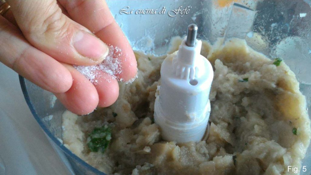 Bata aos poucos com uma concha de água de cozimento até obter um purê macio. Depois adicione a salsinha picada e ajuste o sal (fig. 5).