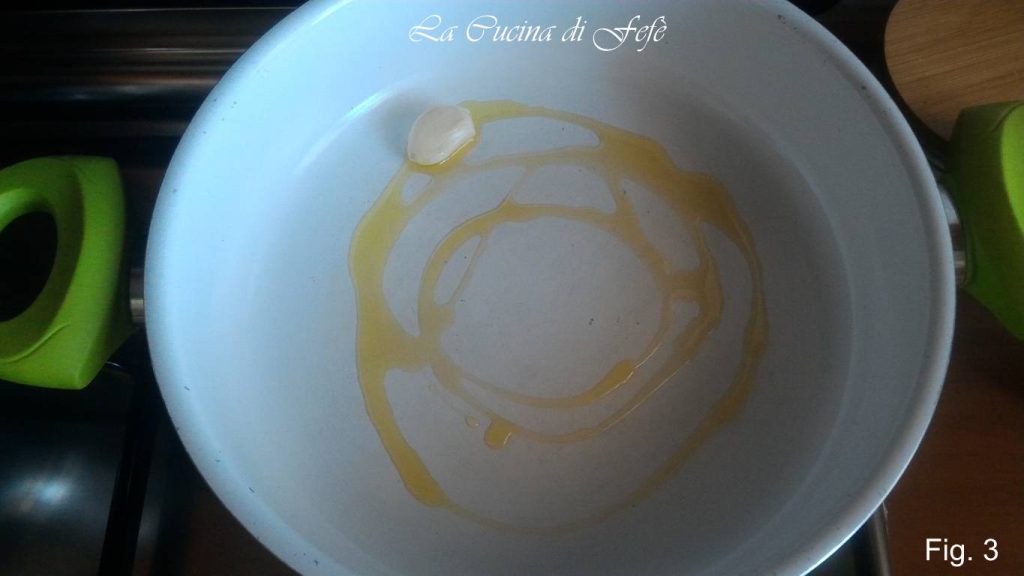 Enquanto isso, em uma caçarola, doure o alho com um fio de azeite (fig. 3).