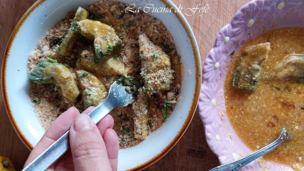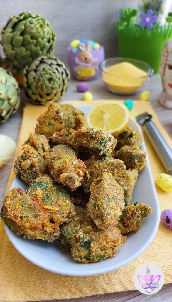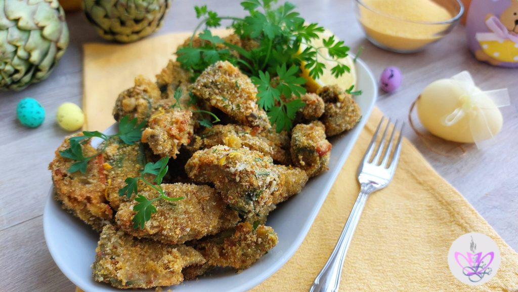 As alcachofras são um dos legumes de inverno que eu mais amo — e não é só por causa do sabor, mas pela versatilidade! Podem ser cozidas de mil formas, e existem receitas regionais lendárias que eu sempre repito pela delícia, como as alcachofras recheadas à siciliana ou as alcachofras à romana, só pra dar dois exemplos. Hoje, porém, vou te mostrar como prepará-las cortadas em gomos para depois serem empanadas e gratinadas no forno! Ficam perfeitas como acompanhamento ou como petisco finger food em estilo vegetariano para servir nas festas ou em ocasiões especiais!