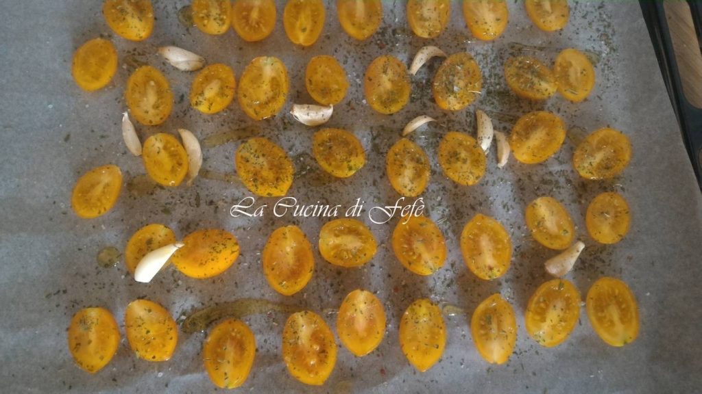 Enquanto isso, desligue o forno e deixe os tomatinhos amornarem em temperatura ambiente.