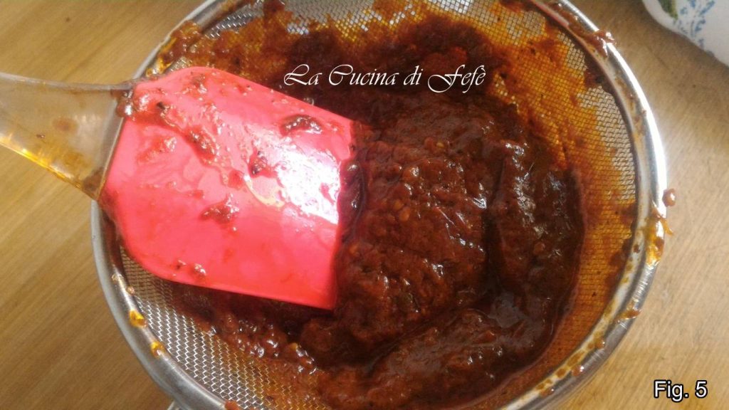 Bata até obter um creme que você deverá posteriormente passar por uma peneira para extrair o molho e deixar de lado as cascas (fig. 5).