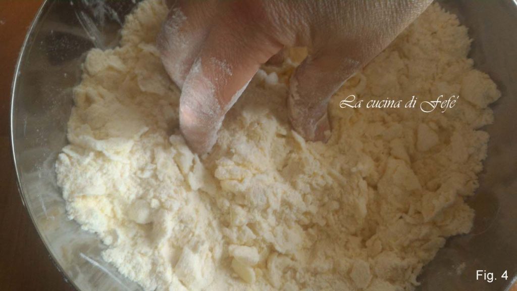 Misture em baixa velocidade ou com as mãos até obter uma mistura semelhante à areia (fig. 4).