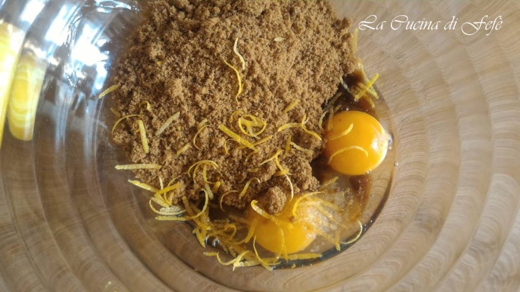 Adicione também o açúcar mascavo, no meu caso integral, e as raspas de um limão.