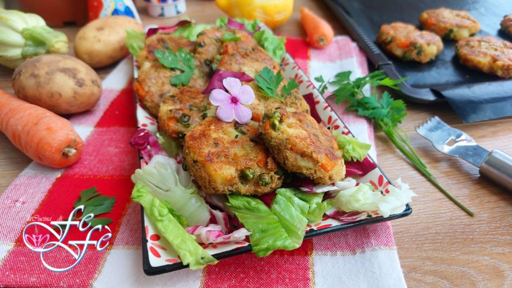 Agora fazer o leite de aveia em casa virou uma rotina que me trouxe inquestionáveis vantagens! Já falei muito sobre como essa escolha pode influenciar a saúde do nosso organismo e a economia doméstica, mas tem mais! Uma conveniência adicional vem do aproveitamento do “resíduo”, chamado okara, resultante da autoprodução do leite vegetal, criando pratos genuínos, saudáveis e deliciosos! Aqui está mais uma receita em estilo vegetariano, que conforme as necessidades pode tranquilamente se tornar também vegana e sem lactose! Mini burgueres à base de okara de aveia, que é usada como substituto dos ovos. Um recurso incrível para todos aqueles que precisam reduzir o consumo ou seguir uma dieta alimentar específica que preveja a total ausência de ovos! Além disso, a okara é realmente rica em nutrientes, portanto, por si só, já teremos uma excelente base do ponto de vista nutricional. A esse ingrediente, adicionei batatas, cenouras, abobrinhas, cebola roxa de Tropea, cebolinha fresca e ervilhas. Enfim, um monte de vitaminas e sais minerais com a leveza do cozimento no forno, mas se desejar, você também pode fritá-los ou cozinhá-los na fritadeira sem óleo! Ficarão crocantes por fora e macios e saborosos por dentro! Você pode servi-los tanto como um aperitivo saboroso para acompanhar o happy hour e saborear com os amigos, quanto como um prato principal vegetariano para oferecer às suas crianças, considerando o quanto é difícil fazer com que comam legumes! Dessa forma, não só irão adorar, mas ainda pedirão mais.