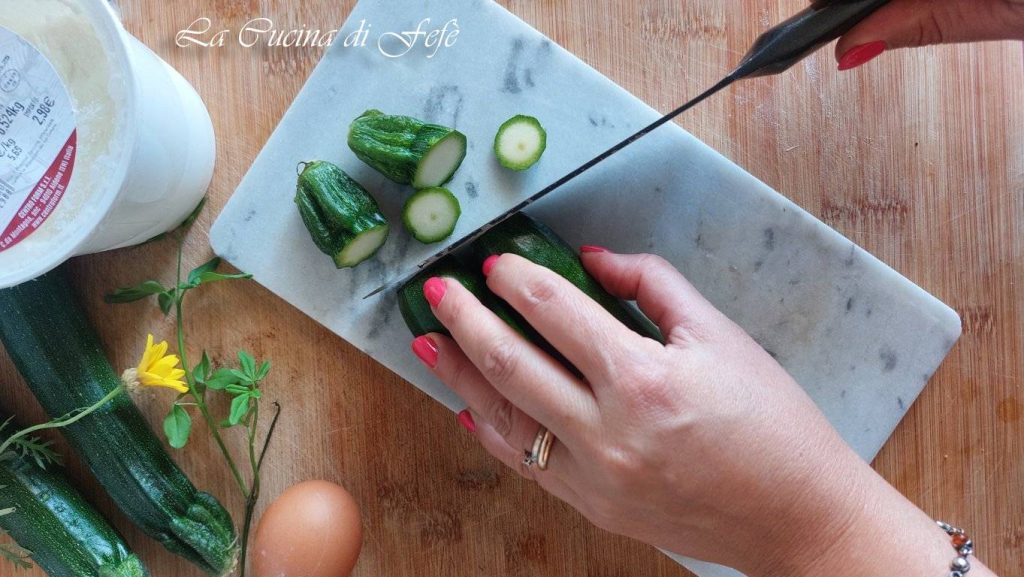 • Comece lavando as abobrinhas muito bem em água corrente e, com a ajuda de uma faca, corte as extremidades.